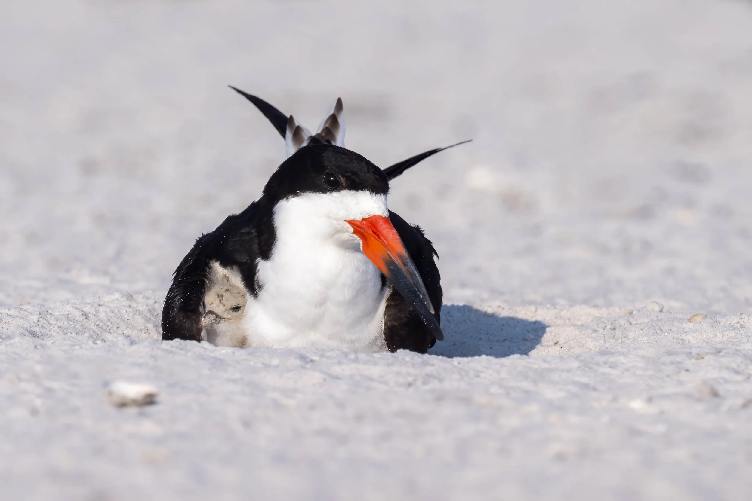 Black Skimmer and chick. St. Pete Beach, Florida
