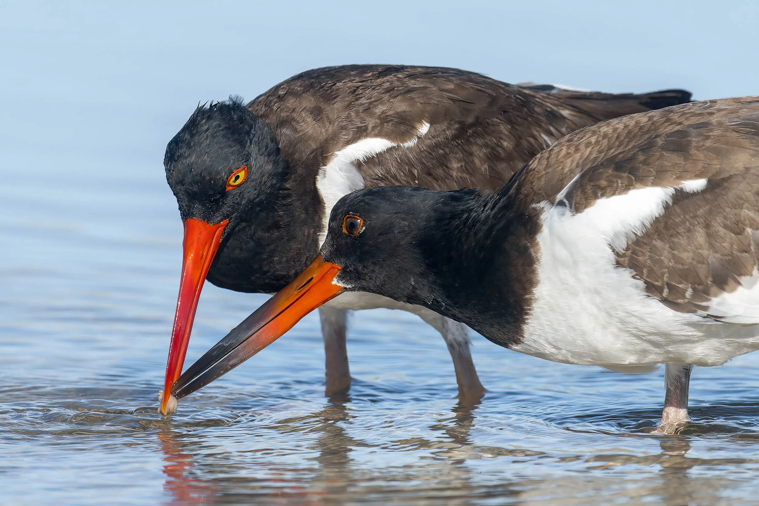 American Oystercatcher feeding its young a mollusk. Pinellas County, Florida