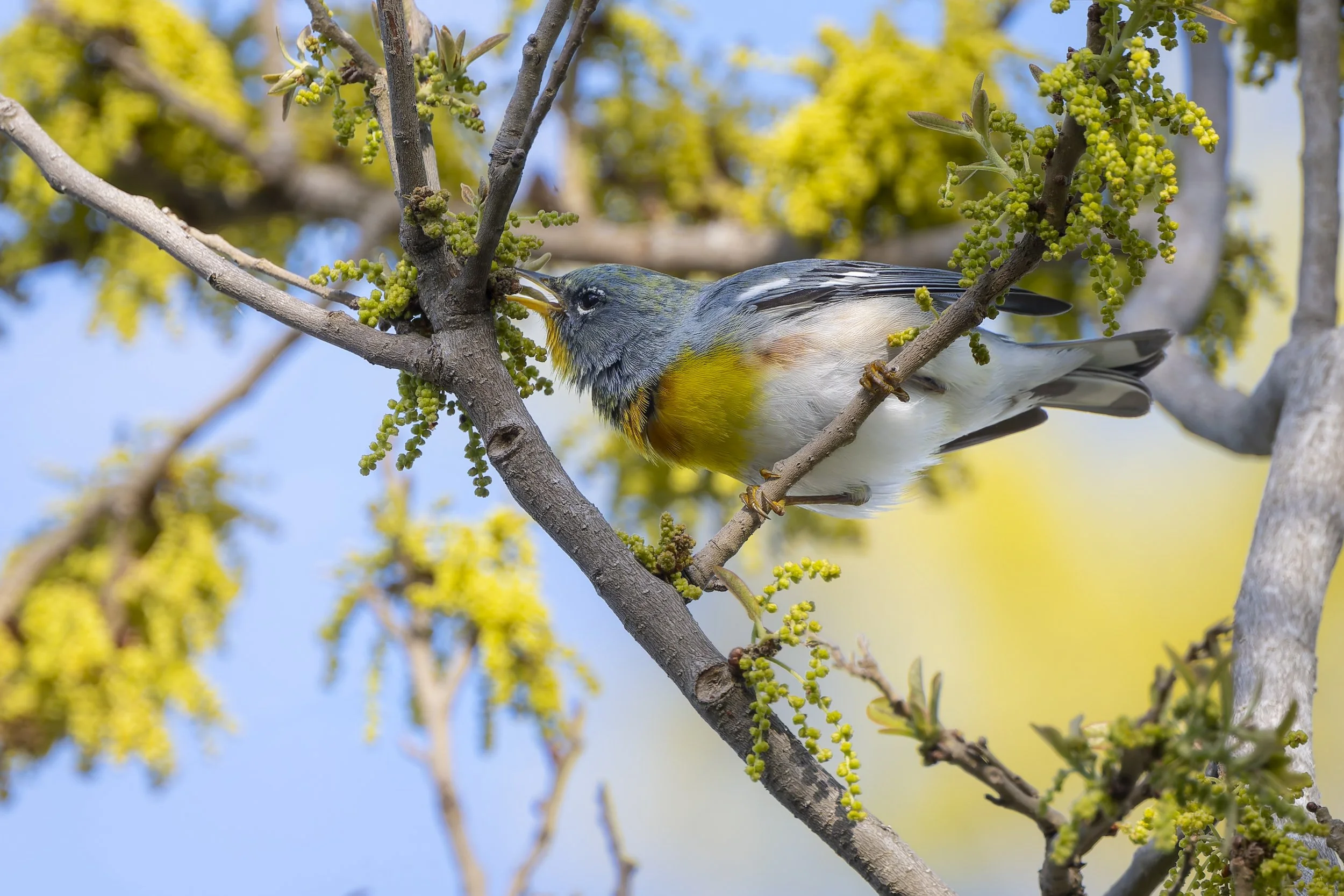 Northern Parula. Photographed in the oaks at the East Beach Picnic area. Nikon Z8 with Nikkor Z 800mm f/6.3 VR S lens at f/6.3, 1/1000 sec, ISO 450.