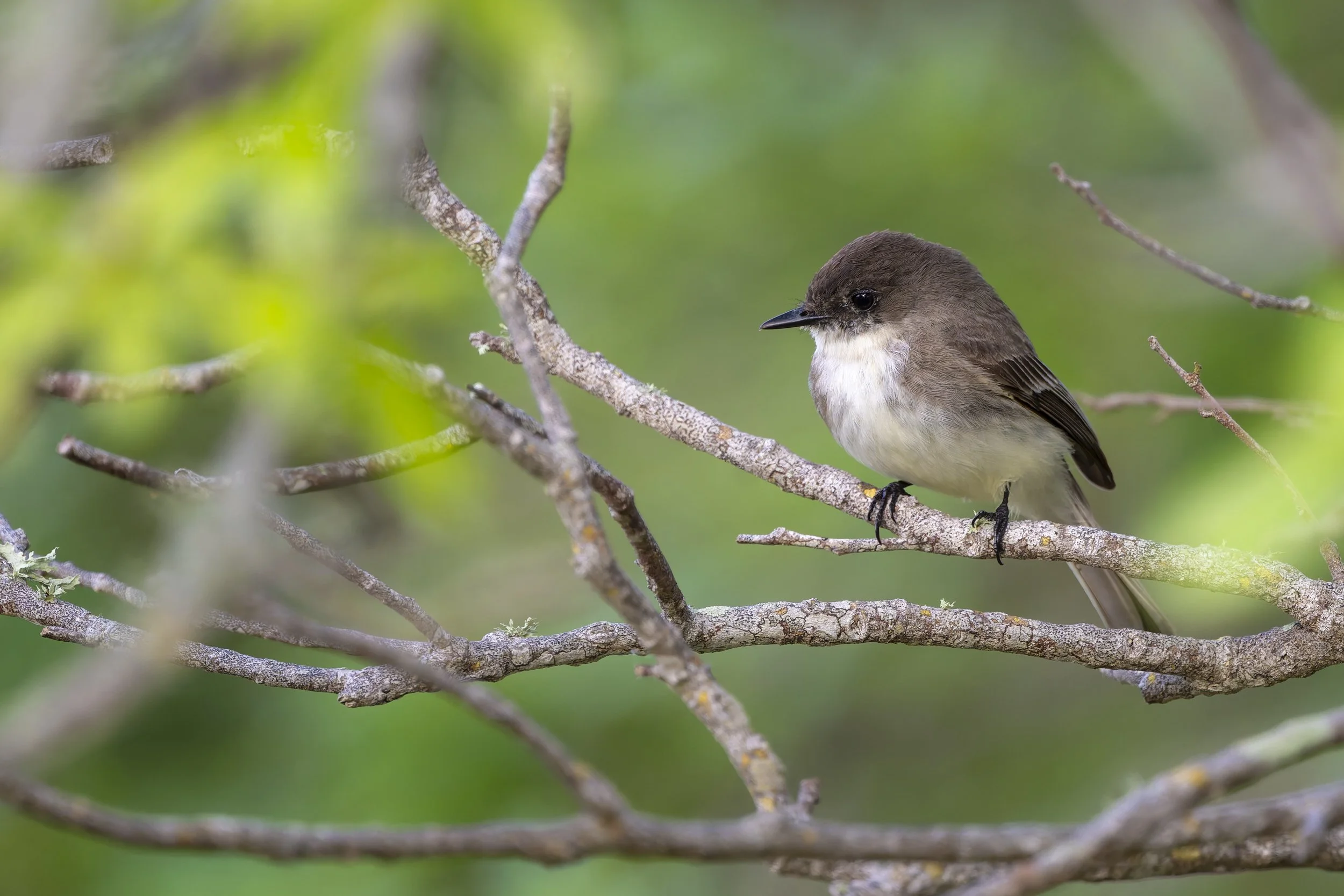 Eastern Phoebe. Photographed in the trees at the East Beach Picnic area. Nikon Z8 with Nikkor Z 800mm f/6.3 VR S lens at f/6.3, 1/1000 sec, ISO 2000.
