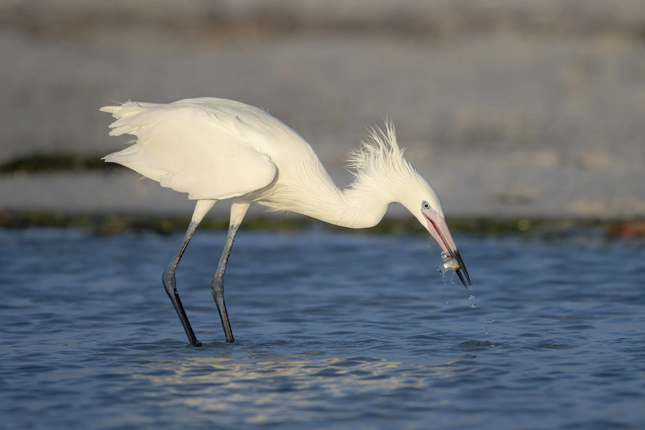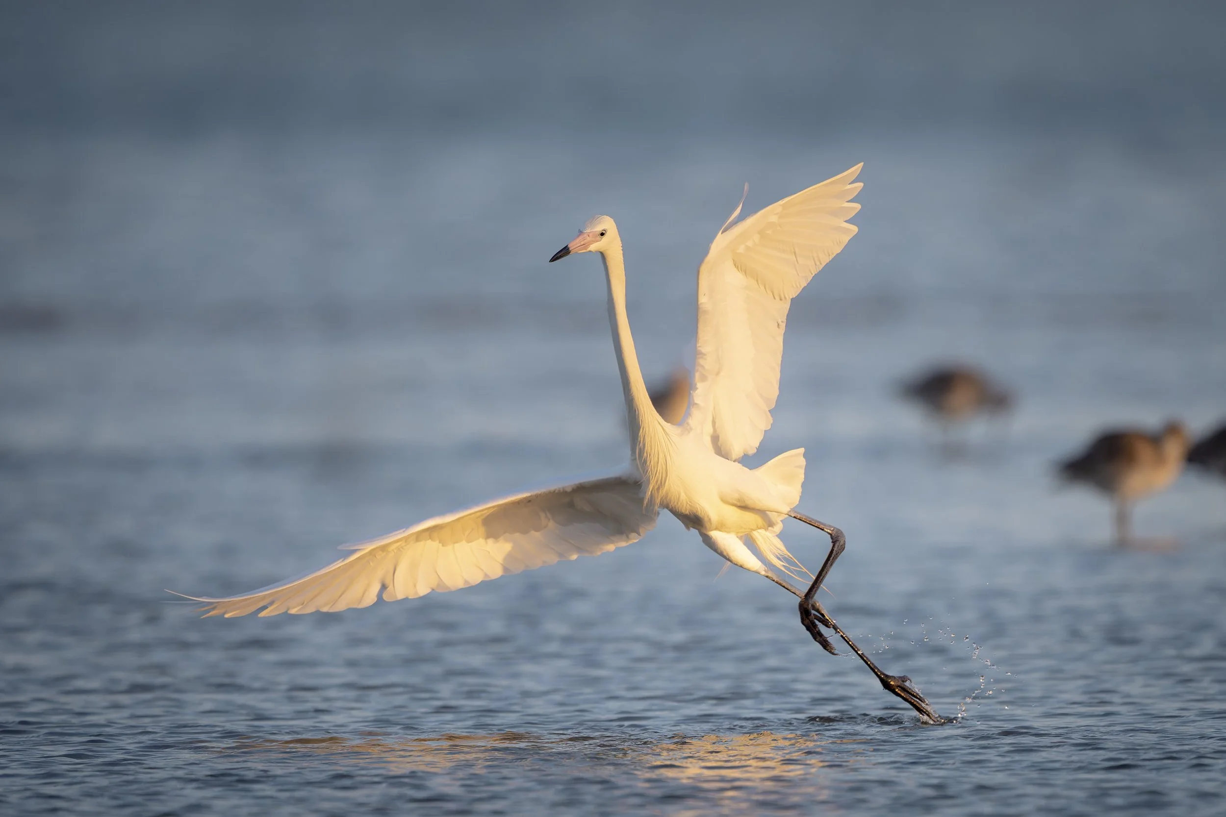 There were two photographers in the area. One was a wedding photographer photographing a couple wearing their wedding clothes. The other was a bird photographer who, quite frankly, was far too close to birds. He was photographing Reddish Egret (white morph).