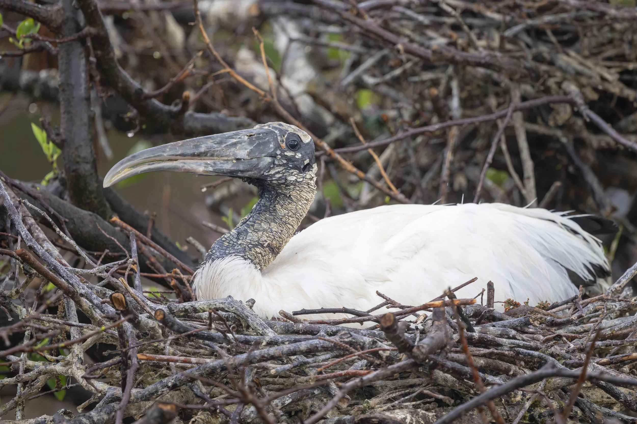 Wood Stork. Nikon Z8 with Nikkor Z 800mm f/6.3 lens at f/6.3, 1/800 sec, ISO 4000.