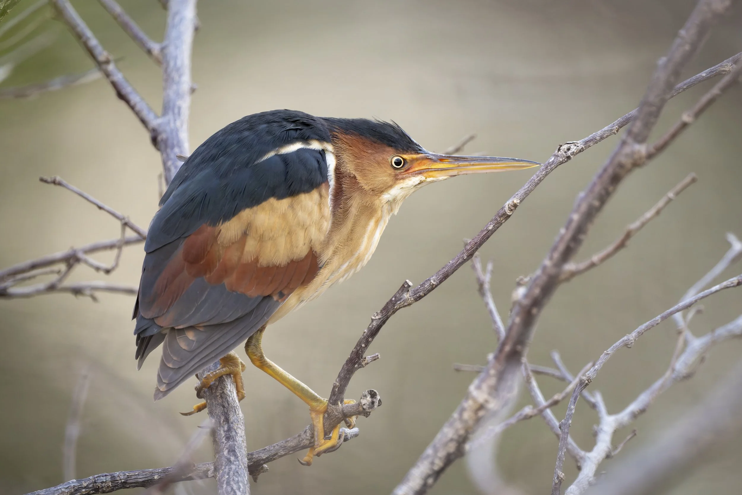 I was surprised by the number of Green Herons that I saw - at least a dozen. Usually secretive little birds, these guys were particularly active and out in the open. The highlight of the day, though, was spotting a beautiful Least Bittern in the trees. I was lucky to be able to get a clean shot through the branches.
