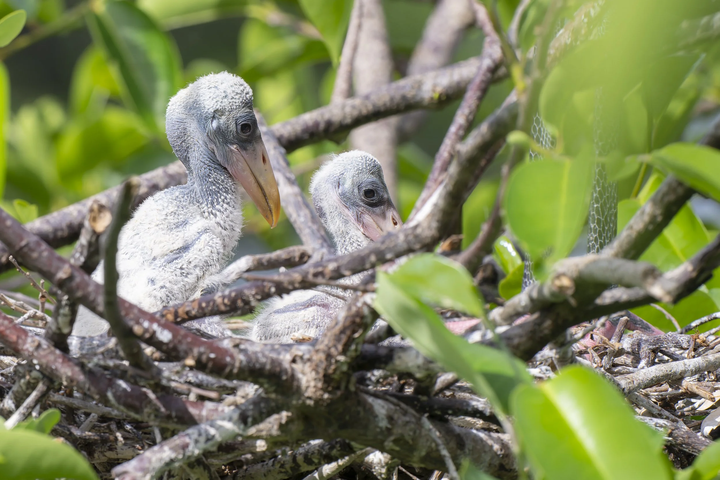 Wood Stork chicks. Nikon Z8 with Nikkor Z 180-600mm f/5.6-6.3 VR lens at 410mm, f/11, 1/1000 sec, ISO 1000.